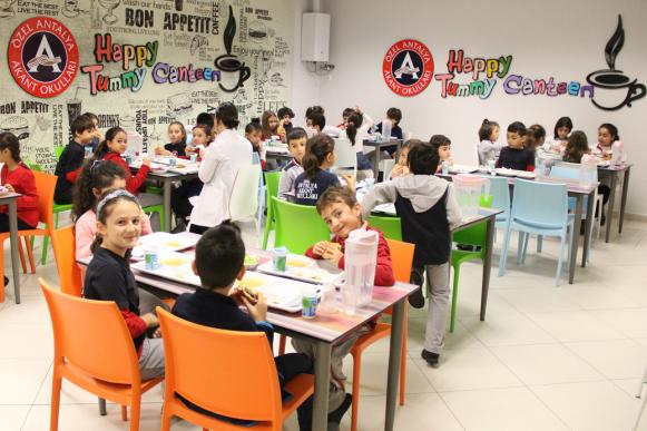 Canteen: In floor B1. Products without expiration date label are not provided. Foods that are not proper for sanitary requirements and fizzy drinks are not sold. The limits of the money that our students spend are determined by our school. Their spending are controlled.