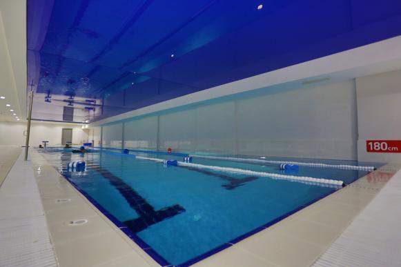 Swimming Pool: In floor B2. It is semi olimpic, and has 3 lanes. It is the only one swimming pool that has underfloor heating among the schools in Antalya. There are showers and changing rooms in one side for female students, and in the other side for male students. There are employees in both sides for helping students to get dressed, and take a shower.