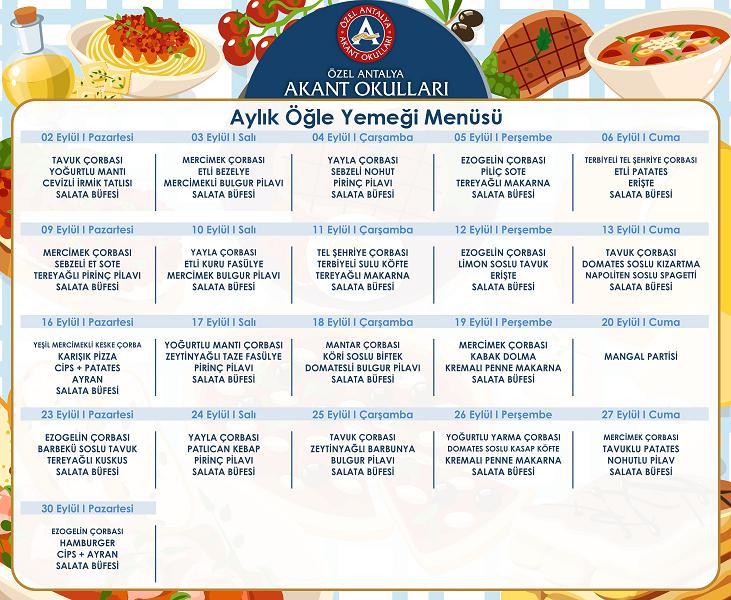 AYLIK YEMEK LİSTESİ