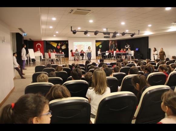 Akant Primary School 3rd grade students held the Debate and Quiz Show events on February,24,2017. The classes had the debate for and against the topics ‘Should homework be banned in schools?’ and ‘Should children bring their mobile phones to school?’and answered the questions asked by the audiences. And in the Quiz Show they answered questions about the subjects they have learned since the beginning of the year. Each class had four students for the debate and the quiz show.