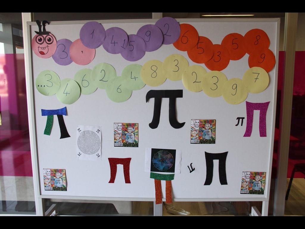 Tüm teneffüslerimiz “Pi Şarkısı” ile başladı ; öğrencilerimiz Pi kurabiyelerini zevkle yediler; panolarımız pi karikatürleri , pi şiirleri ve resimleri ile bezendi. Akla gelebilecek her türlü sayısal veride yer alan bu pi gizeminin bilinmeyenlerine inmek öğrencilerimizi hem mutlu etti hem de onların genç zihinlerini bilgi ile kuşattı.